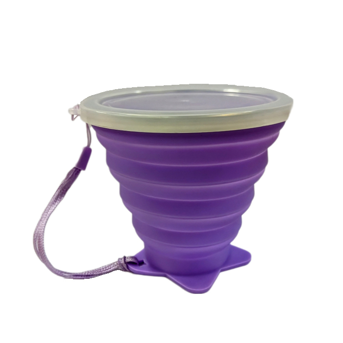 - 【P010402】折りたたみシリコンカップ ≪紫/パープル≫ 携帯コップ コンパクトカップ 計量可能 防災・アウトドア用品