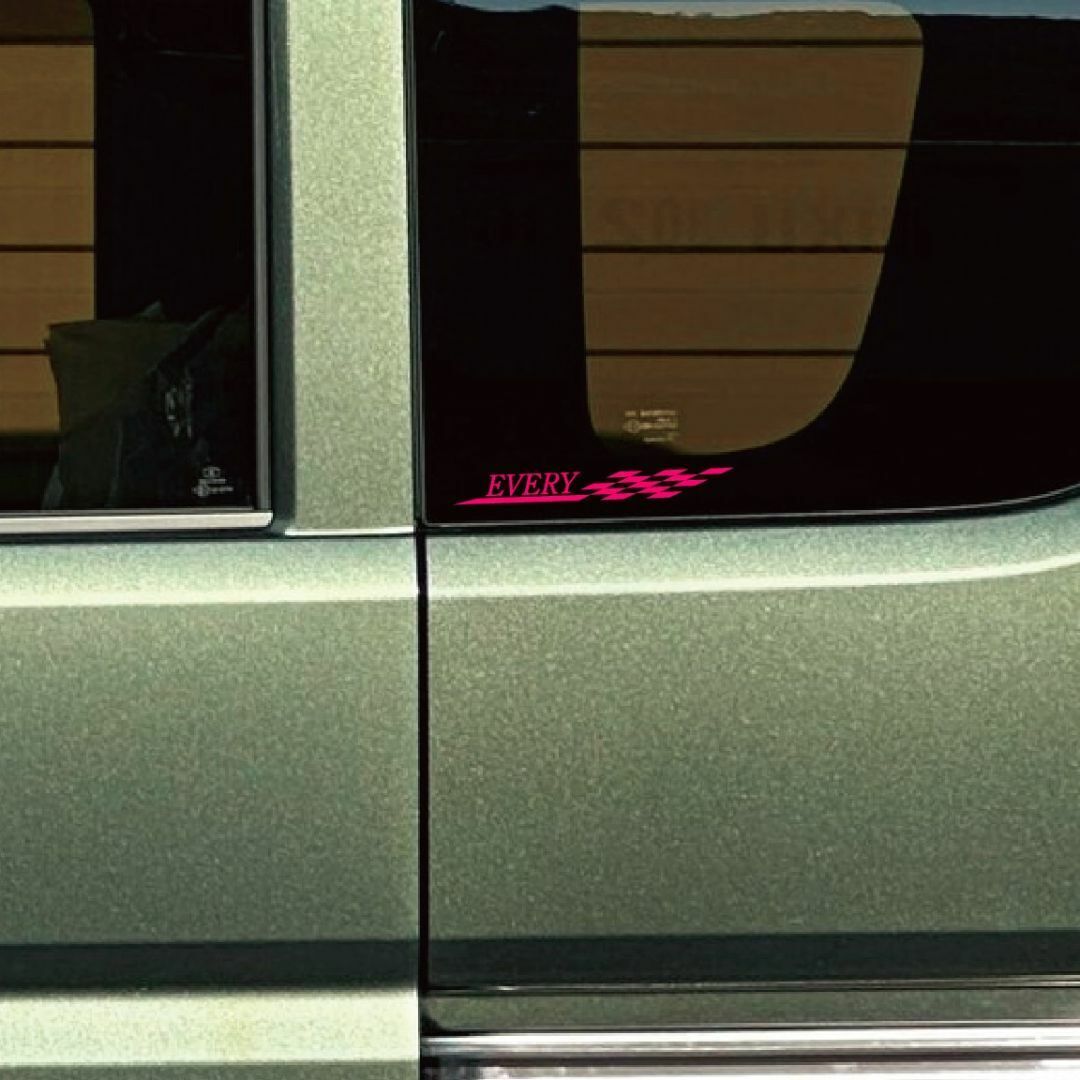 - スズキ エブリイ エブリィ チェッカーフラッグ ドレスアップ カッティングステッカー 転写シール ピンク 色変更可