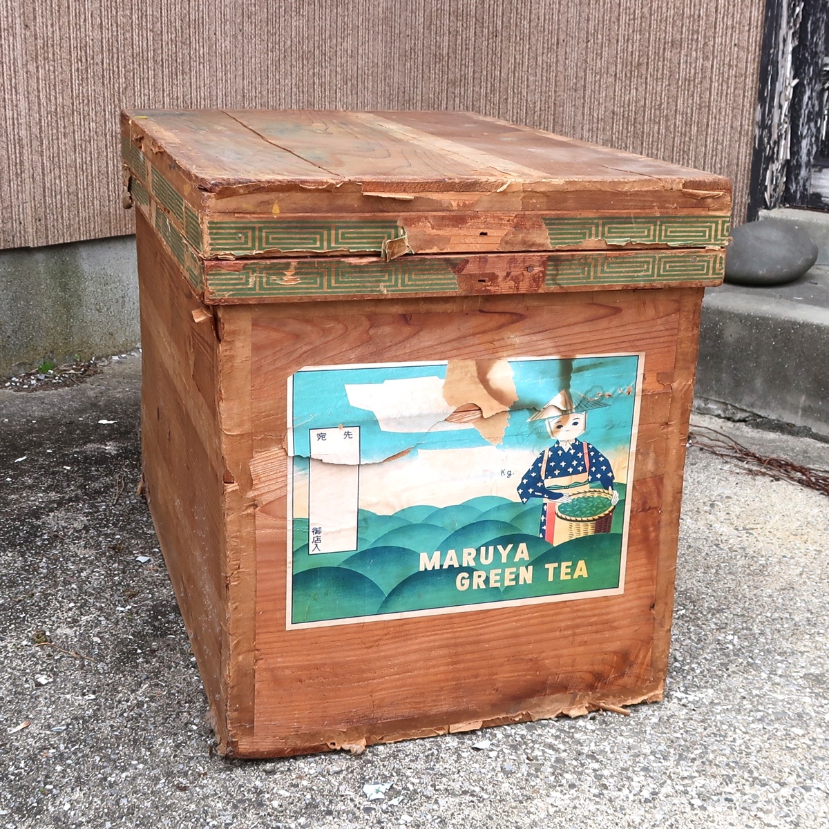 - レトロ 茶箱 木箱 木製 ブリキ貼り 収納箱 保管箱 衣装箱 昭和 ビンテージ アンティーク 古道具 古民家 13