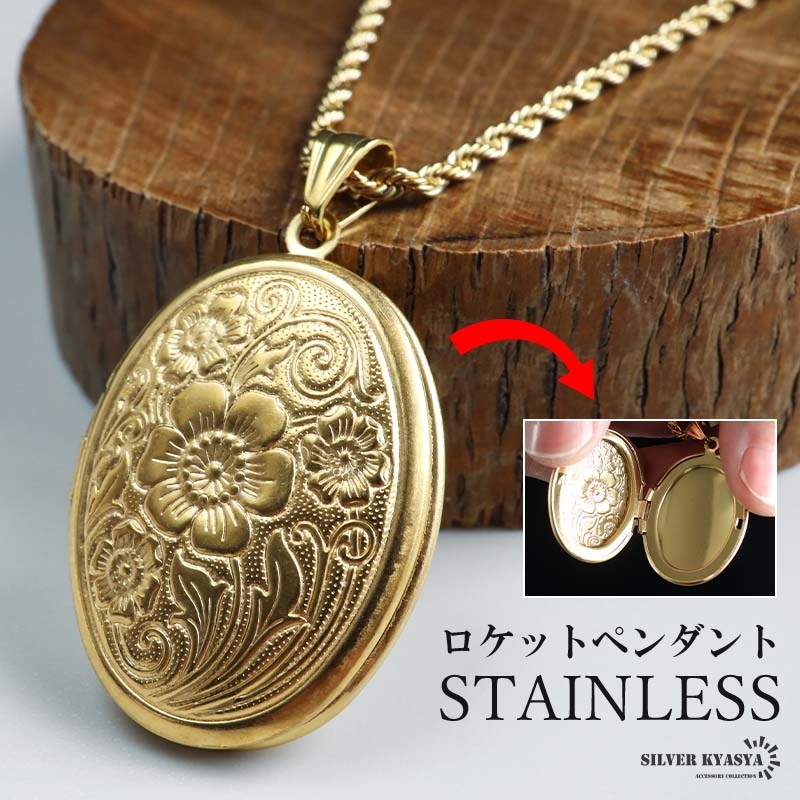- (60cm) ステンレス ロケットペンダントネックレス フラワーネックレス ハワイアンネックレス 18KGP 金アレ対応