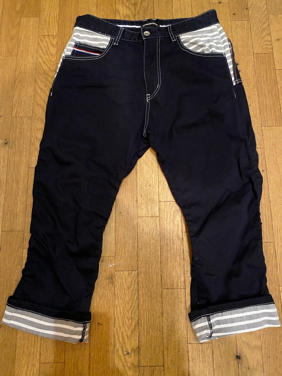 - 美品サルエルショートハーフパンツ切り替えデニムジーンズ切り替えし夏春秋 ワークペインターアウトドア マリンルックボーダーストライプ