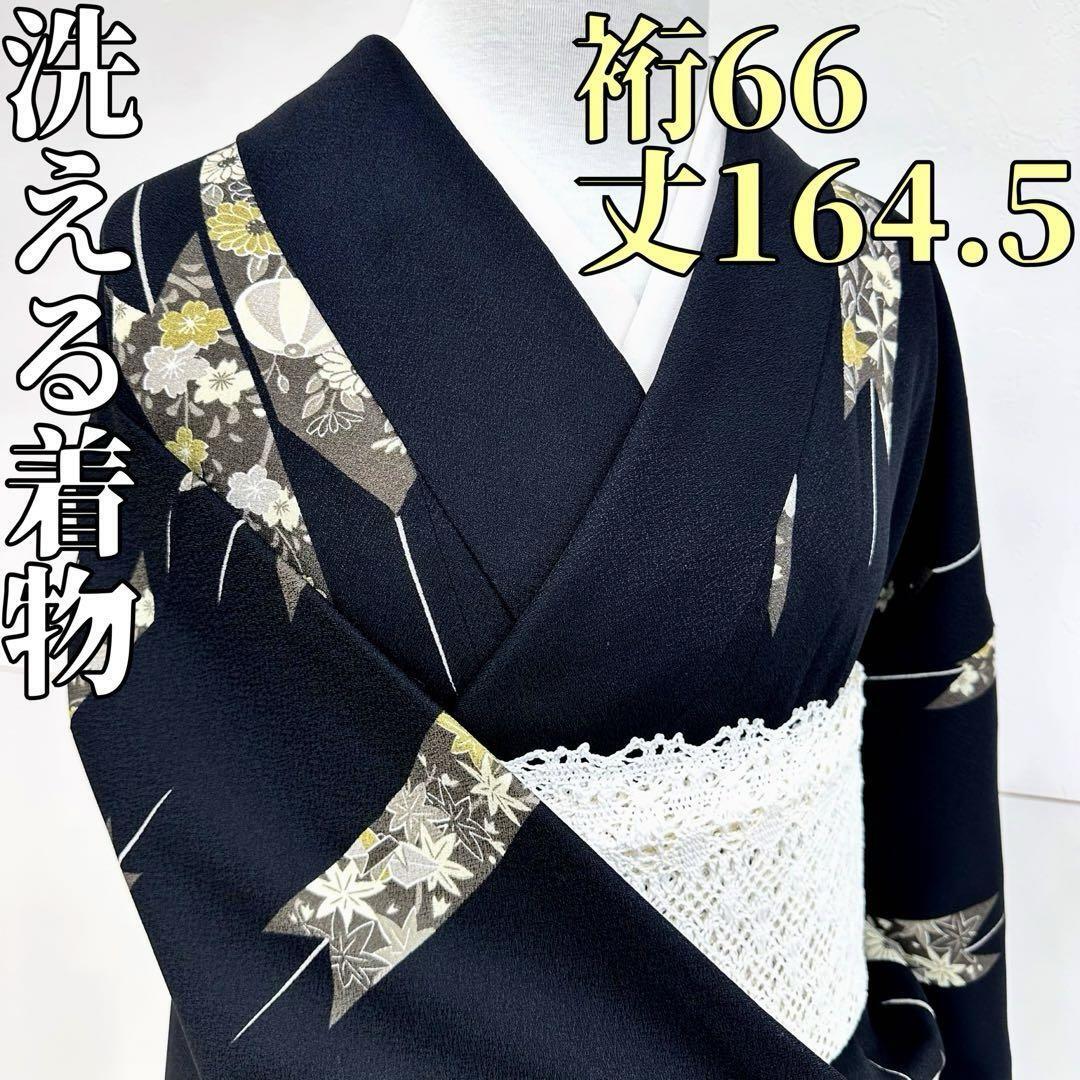 - 【着物と帯 時流】ポ25475◆洗える着物 小紋◆桜 お花見 楓 黒 美品