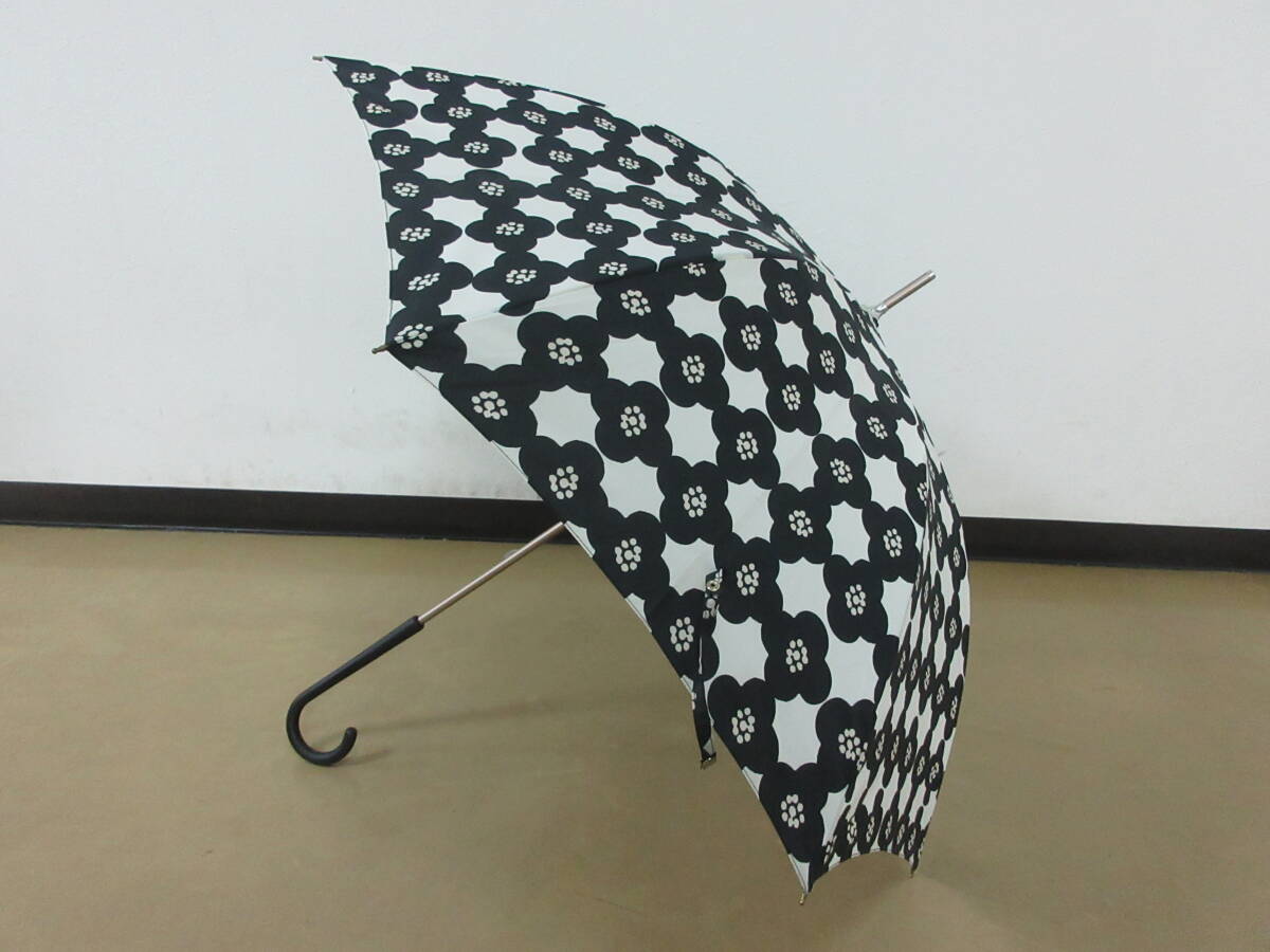 > ( せ-A4-8037 )Wpc. ワールドパーティー 雨傘 長傘 手開き式 白黒 ブラック ホワイト 花柄 かわいい おしゃれ 全長約86cm 半径約51cm 中古