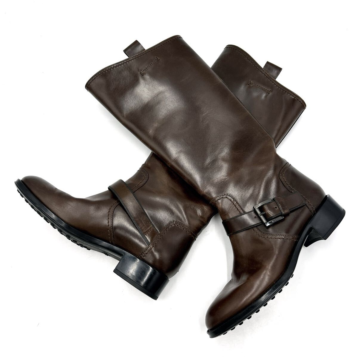 - T * イタリア製 '高級感溢れる' TOD'S トッズ 本革 ロング ジョッキー ブーツ 革靴 EU34 21cm レディース 婦人靴 シューズ