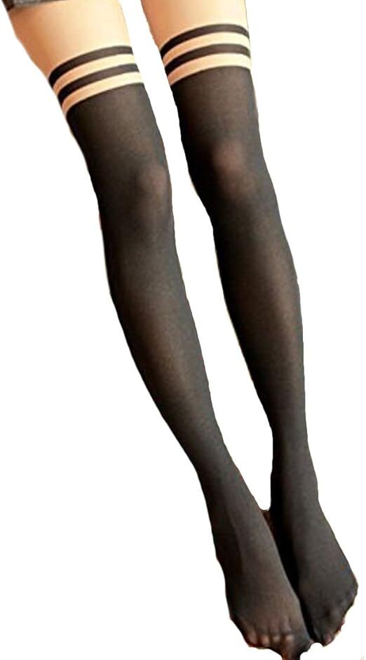 - NA フェイクニーハイ ストッキング タイツ 黒 レディース 美脚 ニーハイソックス インナー パンスト コスプレ セクシー ダンス 衣装 593