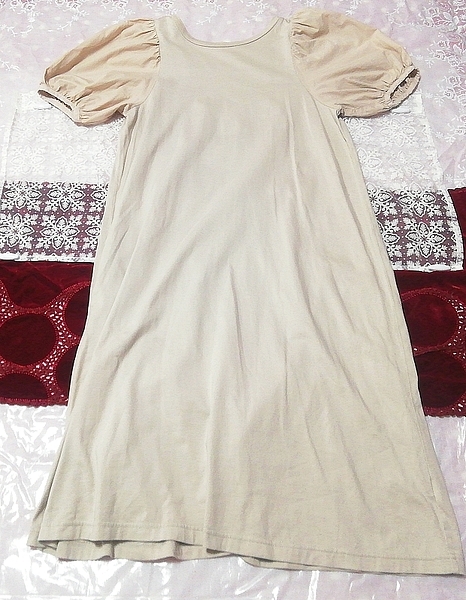 > インドネシア製アイボリー綿100%マキシワンピースチュニックネグリジェ Indonesian ivory 100% cotton maxi dress tunic negligee