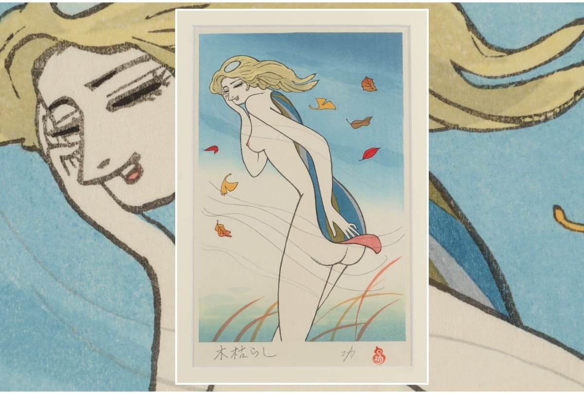 - [ギャラ藤]木版画/小島功/『木枯らし』/A-1219 (検索)骨董/絵画/額装/壁掛/水彩/油彩/日本画/リトグラフ/シルクスクリーン