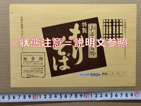 - 駅弁 掛紙(厚紙蓋)JR北海道 長万部駅 特製もりそば 合田 平成初期 520円