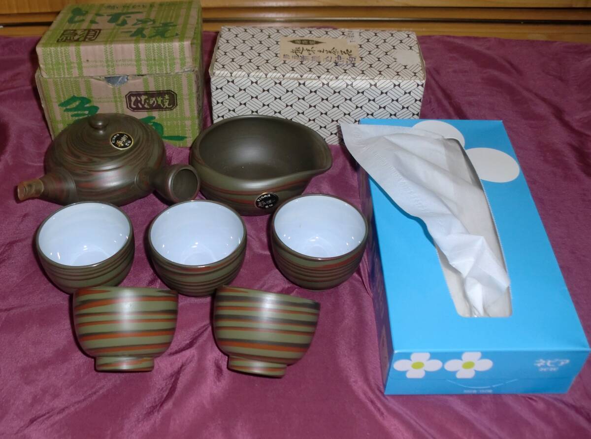 > 未使用■常滑焼 煎茶道具セット 急須 湯冷まし 湯呑 5客 ■手作り雲仙 茶器 和食器 陶芸品 ■送料込