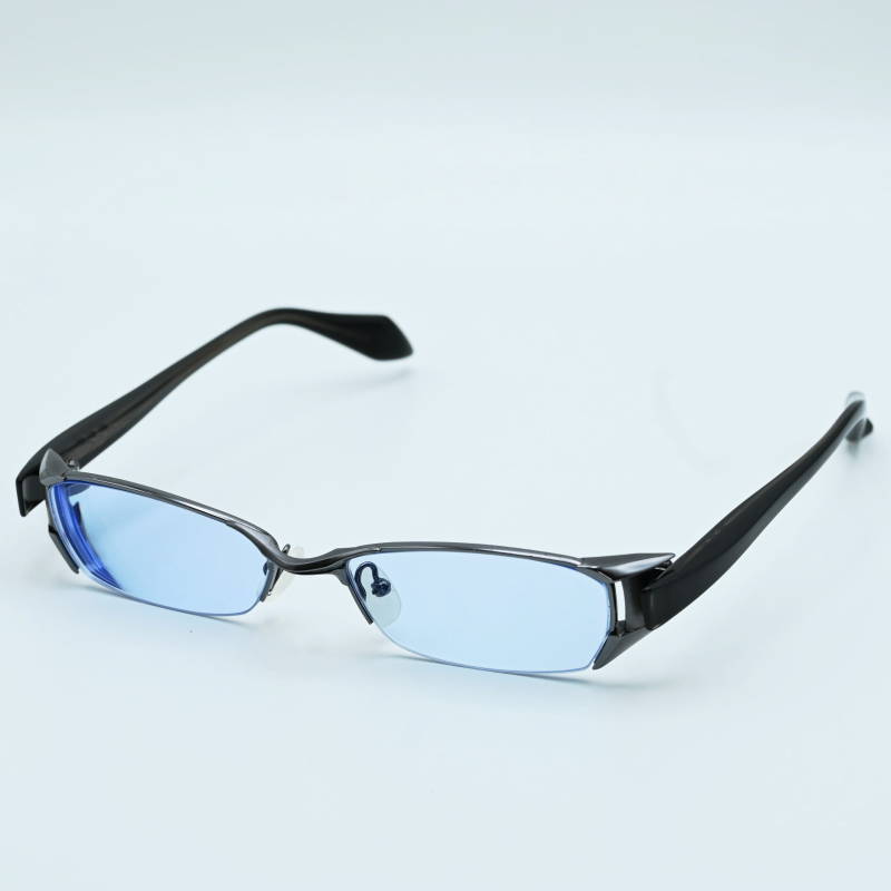 > S02-k057 JAPONISM ジャポニズム チタンフレーム ブルーレンズ度入りメガネ ブラウン/ブルー