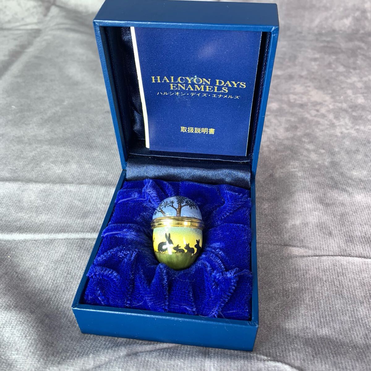 - ハルシオンデイズ 蓋物 小物入れ エナメル ピルケース イギリス 英国 フクロウ うさぎ ラビット 兎 HALCYON DAYS 置物 卵型 エッグ