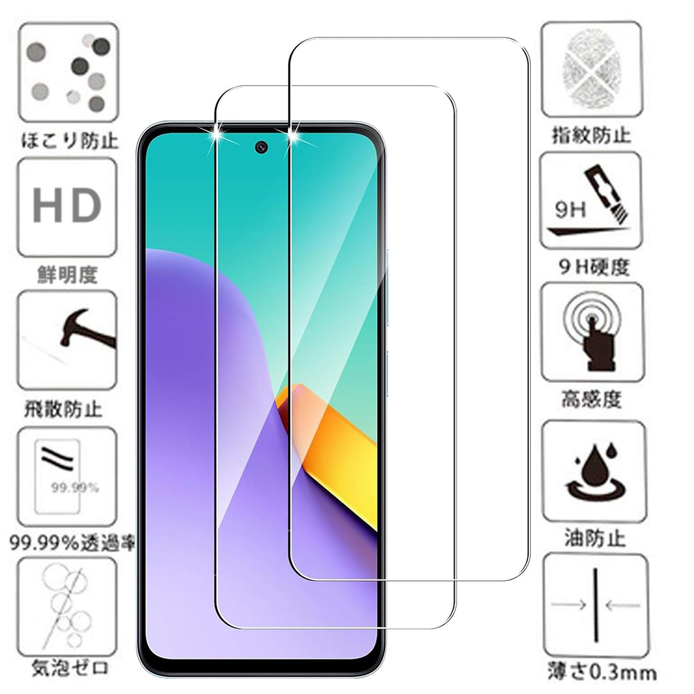 - 2枚入り Redmi 12 5G ガラス フィルム XIG03 レッドミ シャオミ 画面 保護 守る 頑丈 表面 シート シール カバー スクリーン Glass Film 9H