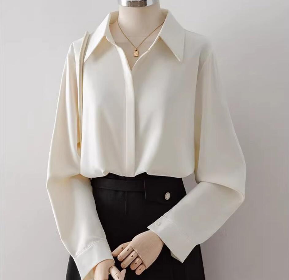 - 新入荷/カジュアル トップス オフィス 通勤 OL シャツ ブラウス レディース 長袖 シャツ 事務服 ビジネス 入園式 入学式 ブラウス/杏