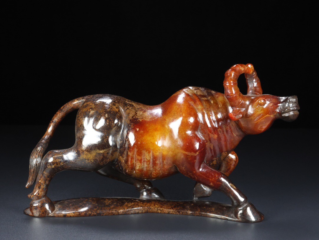 - ▽鴻▽ 和田玉製 細密彫 玉牛 置物 古賞物 中国古玩 中国古美術