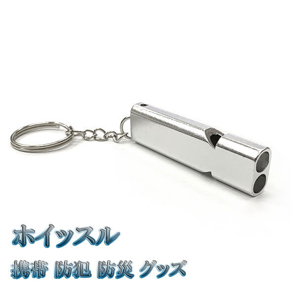 > ホイッスル キーホルダー アルミ 笛 キーリング ストラップ アクセサリー 自転車 車 バイク 大音量 防犯 防災 シルバー 送料無料