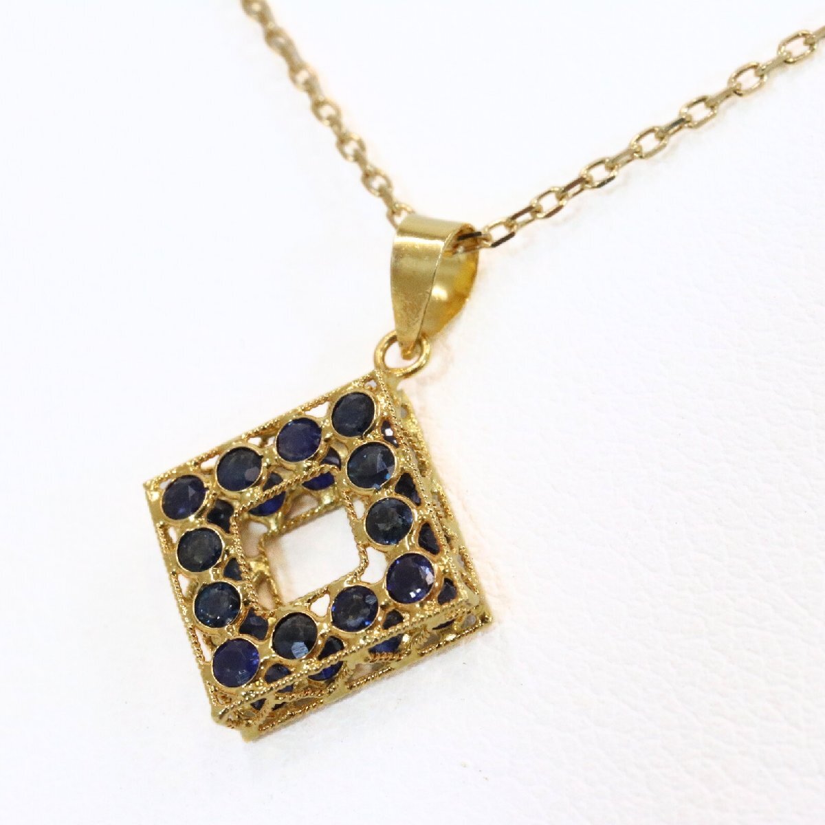 - ネックレス K18YG 18金 イエローゴールド サファイア スクエア ジュエリー 【中古】 / 10255 YMRE