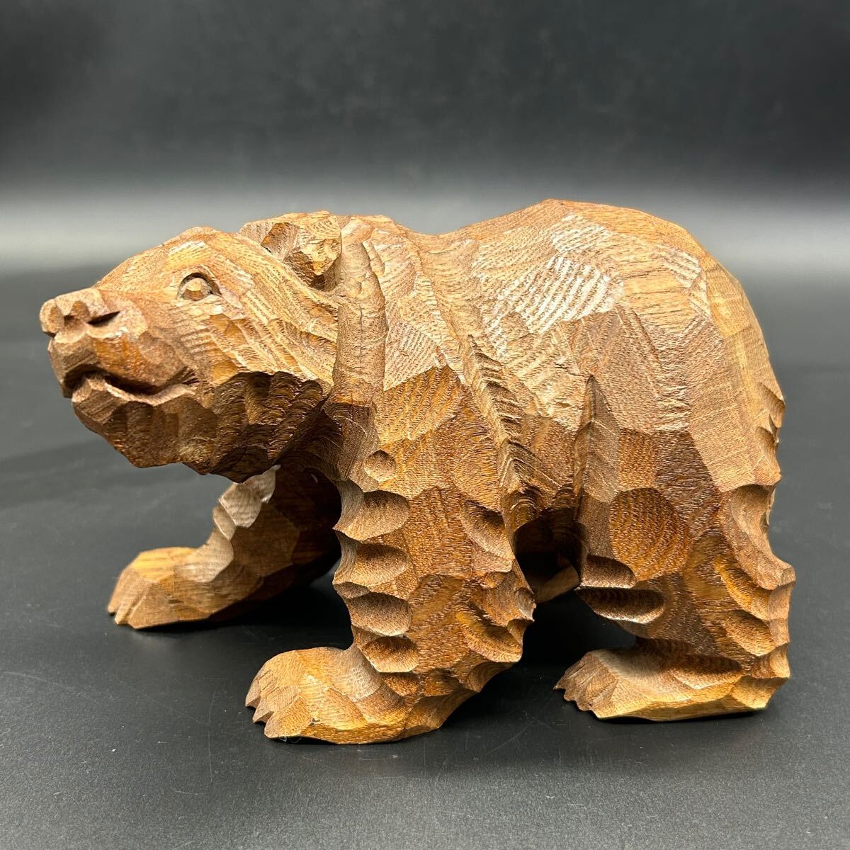 - 木彫り 熊 加藤貞光 貞光作 貞光 刀 銘あり 彫熊 木彫 アイヌ 北海道 インテリア 置物 ニ16-1