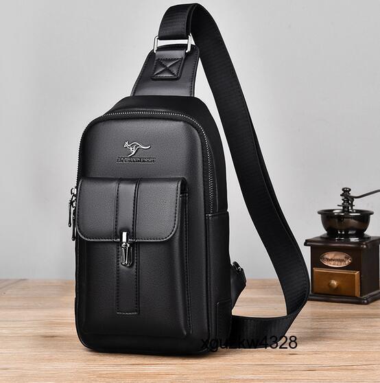 - ボディバッグ ショルダーバッグ ワンショルダー レザー 大容量 高品質 斜め掛け ビジネス カジュアル 黒*赤