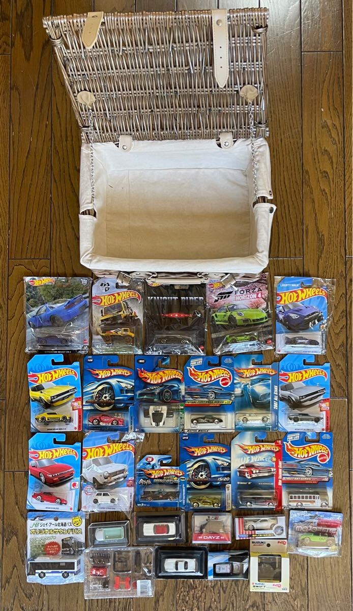 - ミニカー27台(ホットウィール HotWheels 他) +バスケット