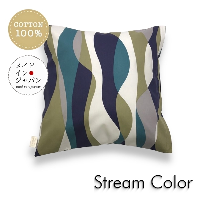 - クッションカバー ストリーム カラー 北欧 波柄 45×45cm 綿100%