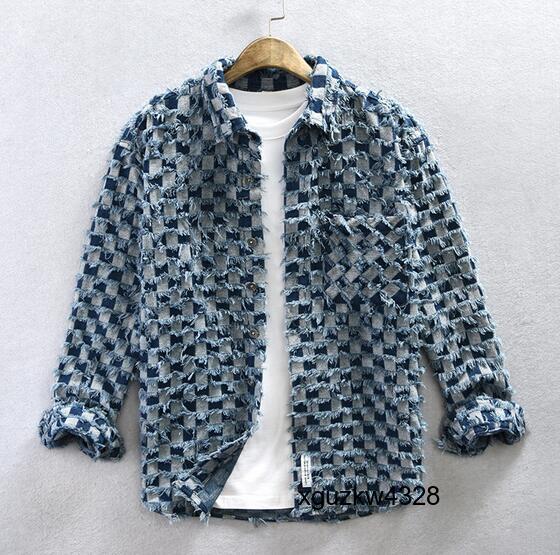 - チェック柄 メンズ デニムシャツ 長袖シャツ デニムジャケット 極美品 ヴィンテージ お洒落 個性 トレンド カジュアル ブラック 2色 M~4XL