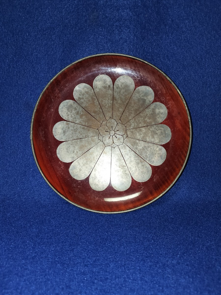 - 梨本宮家 銀十四紋菊 木皿 宮家 下賜 皇室 銀箔 一本木削りだし