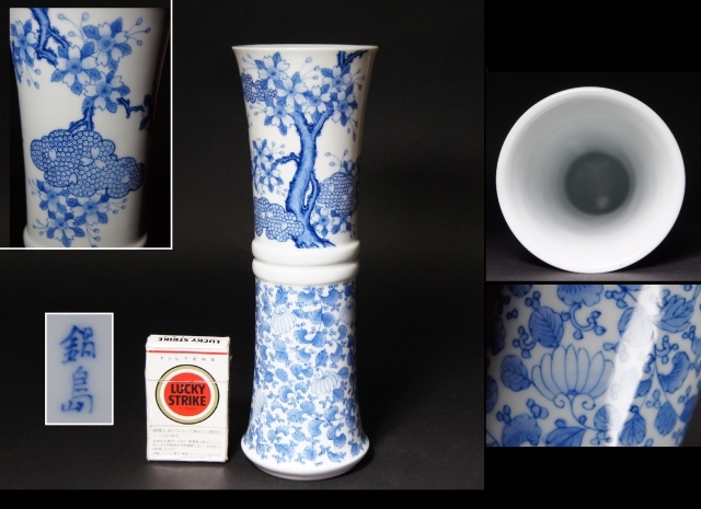 > 時代 鍋島 藍鍋島 染付 桜 唐草 桜樹文 花瓶 花生 花入 花器 桜花 飾壷 華道具 茶道具 青華 青花 検:中国美術