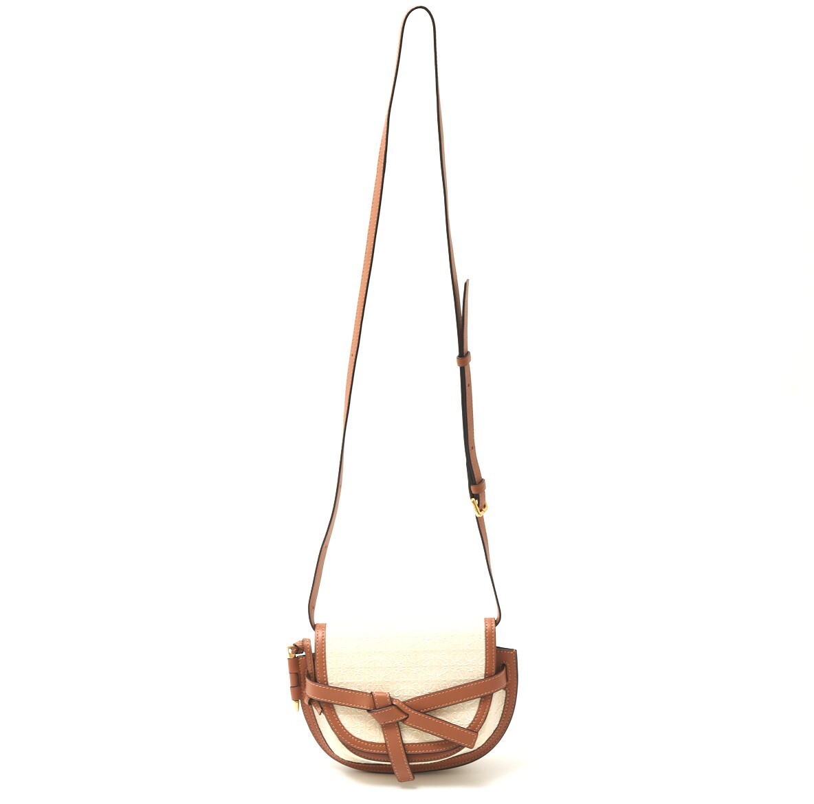 > LOEWE ロエベ アナグラム ゲートデュアルバッグ ミニ A650N46X10 ショルダーBAG ジャガード×レザー アイボリー×ブラウン×ゴールド