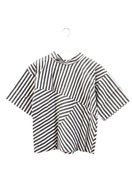 > ディーゼル DIESEL ストライプ ブラウス バックリボン コットン シルク XS ホワイト グレー レディース