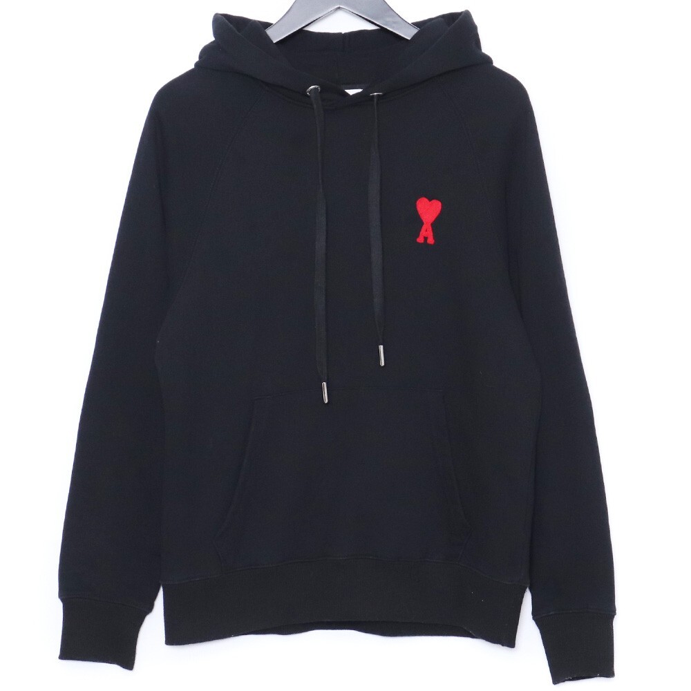 - AMI PARIS ハートロゴ刺繍スウェットパーカー Mサイズ ブラック アミ logo hoodie プルオーバーフーディー