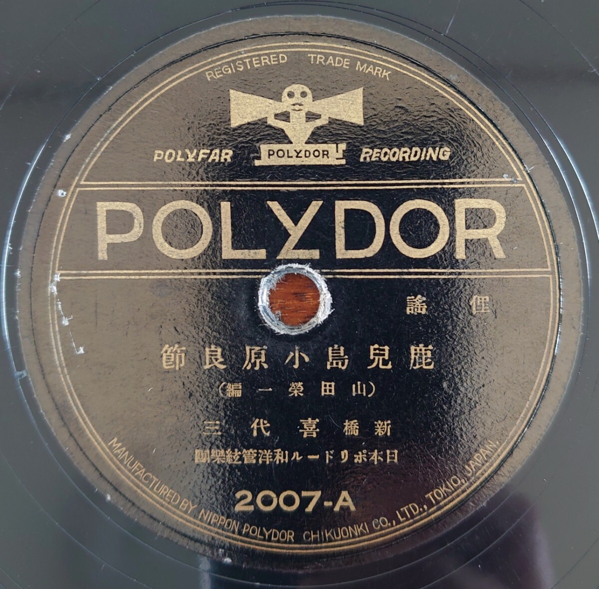- 【SP盤レコード】POLYDOR 2007-AB 俚謠/鹿兒島小原良節-鹿児島/鹿兒島三下り/新橋 喜代三
