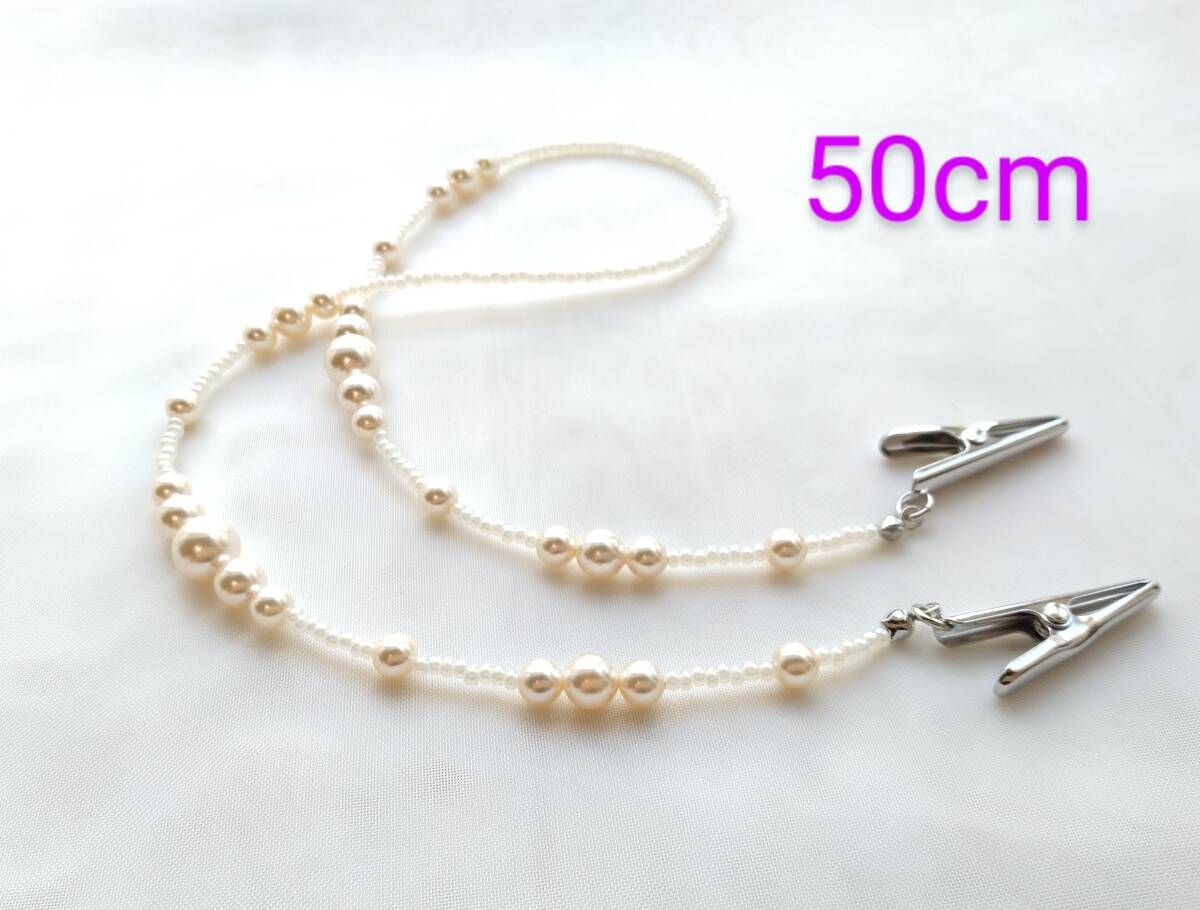 - スワロフスキーパールのナプキンクリップ ハンカチ留め ハンカチホルダー お食事クリップ 50cm