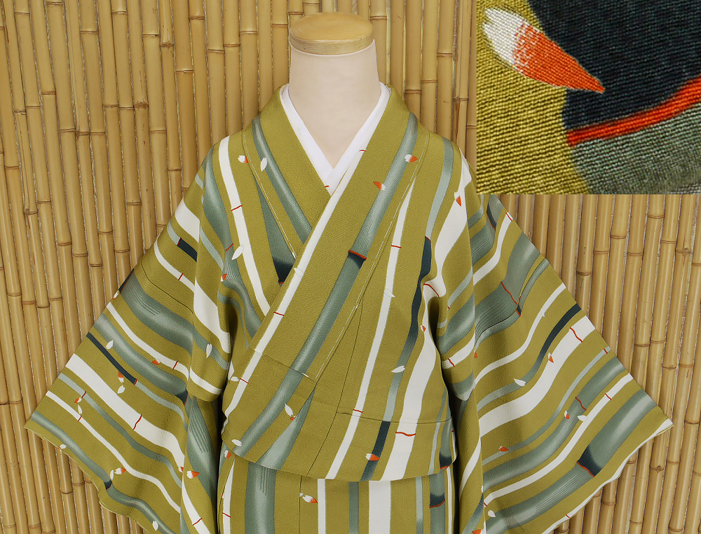 - 【京かんざし】b-657★小紋 竹文 さくらひらり 躾糸付未着用身丈167 cm裄丈67.5 cm★即決送料無料!