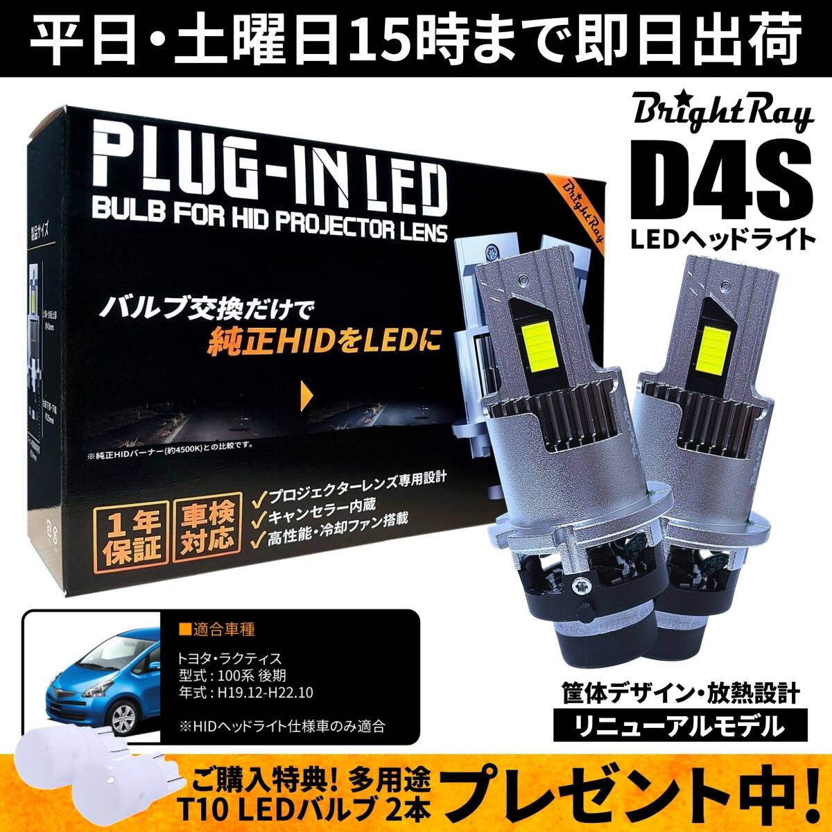 > 送料無料 1年保証 トヨタ ラクティス 100系 後期 NCP100 NCP105 SCP100 (H19.12-H22.10) 純正HID用 BrightRay D4S LED ヘッドライト