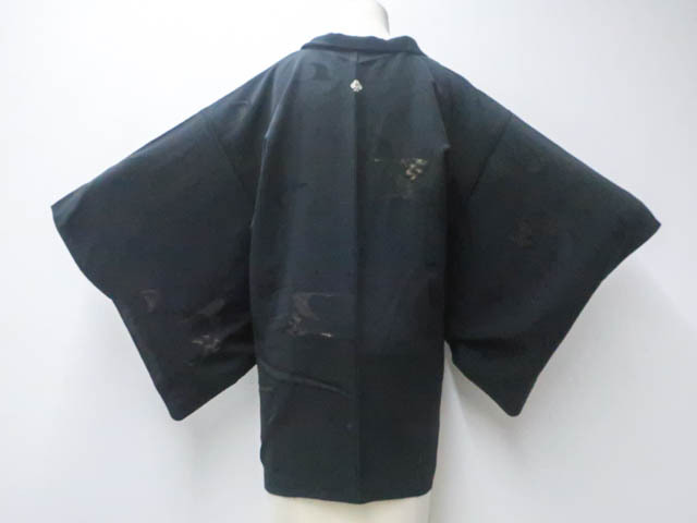 - 《古美術京松》【着物】黒羽織 一つ紋 縫い取り 銀杏文 羽織紐別売り 身丈約78cm 裄丈約61.5cm r7z03-225