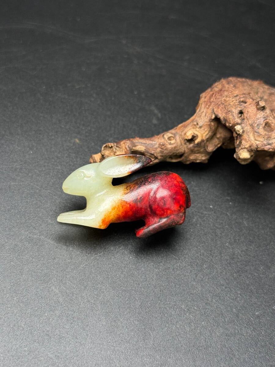 - 【超珍館蔵】和田玉製 細密彫 玉兔 置物 古賞物 古美術品 稀少珍蔵品