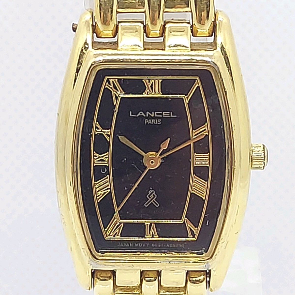 - 【L94】ランセル レディース腕時計 QZ 6031-A03769 トノー ローマン アンティーク 黒文字盤 Lancel