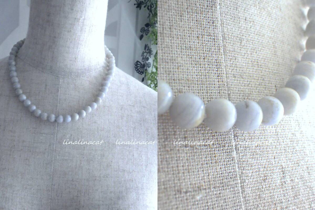 - 未使用 癒し効果 天然石 ブルーレースアゲート* ネックレス 淡いスミレ色 約42㎝
