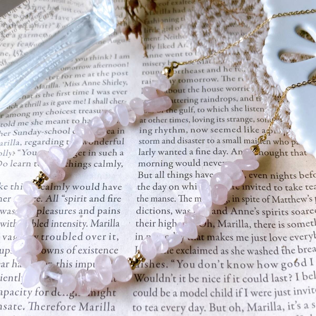 > ネックレス ショート ローズクォーツ ピンク 天然石 ゴールド 新品☆Vintage jewelry accessories R0386