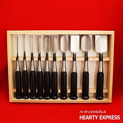 - 播州三木職人 木成追入鑿 黒檀柄 一枚裏 10本組 桐箱入 鑿 セット