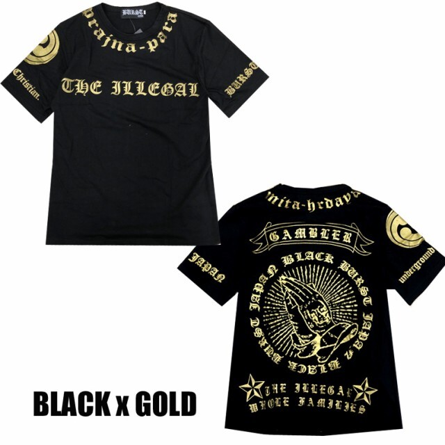 > MAD BURST JAPAN イリーガル&三つ巴&スカルプレイハンド 合掌 プリント 半袖Tシャツ 70537 新品 ブラックゴールド M