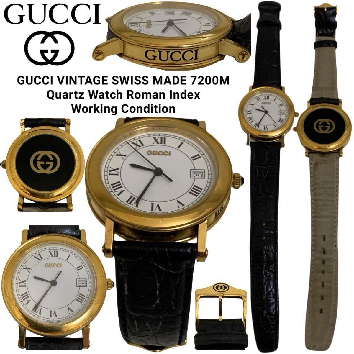 > GUCCI VINTAGE グッチ ヴィンテージ SWISS MADE スイス製 メンズ 7200M クオーツウォッチ ローマン インデックス デイト 腕時計 アーカイブ