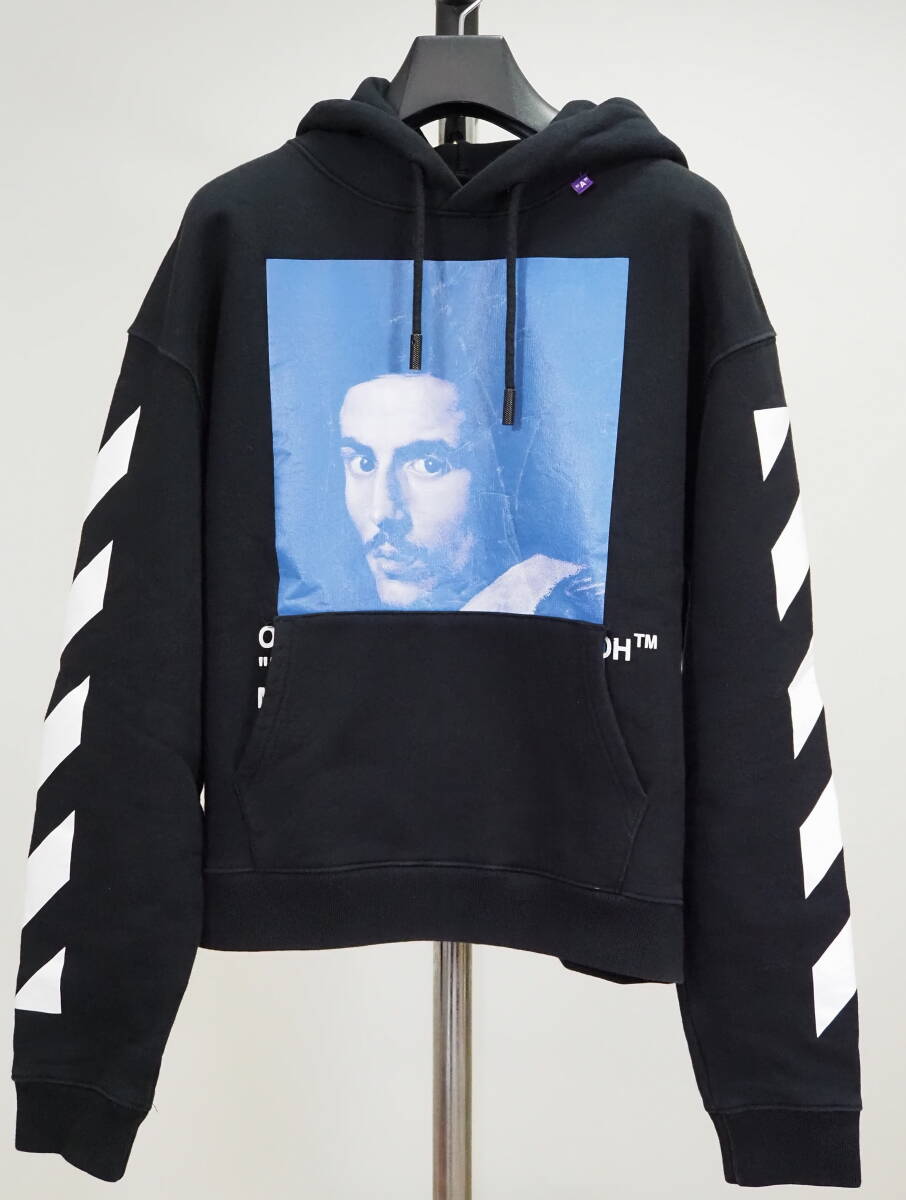 - OFF-WHITE オフホワイト 18AWベルニーニプリントプルオーバーパーカー黒 フーディ