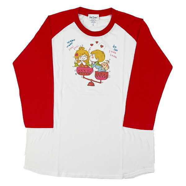 - 水森亜土 テンビン ラグランスリーブTシャツ(M) レッド 亜土ちゃん アパレル