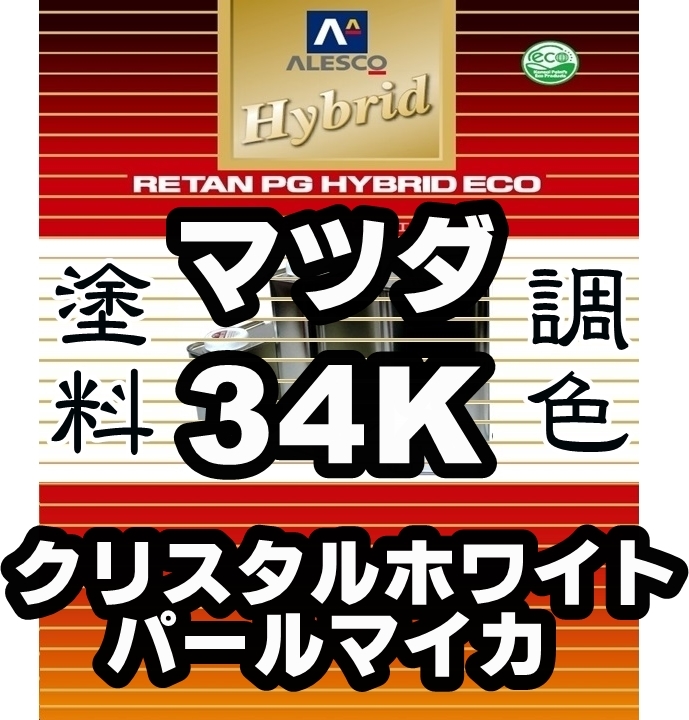 > ●レタンPGハイブリッドエコ調色塗料【マツダ 34K クリスタルホワイトパールMC/カラーorパール各希釈済500g】■日産/フィアット 34Kと同色