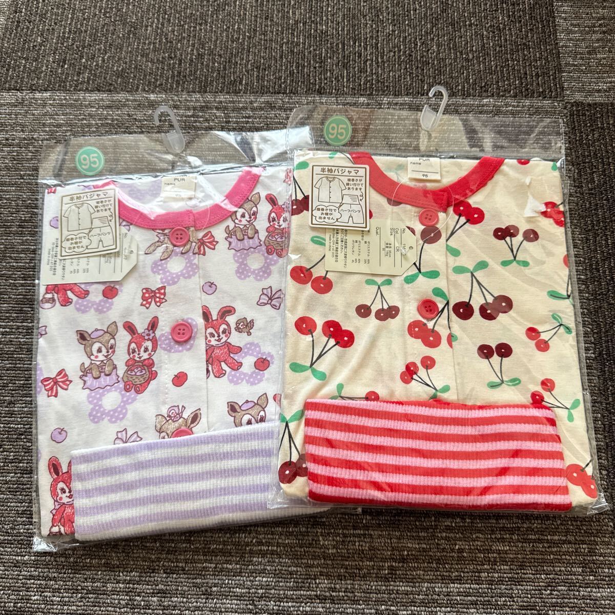 - 【82】腹巻半袖パジャマ 95㎝ 2セット ルームウェア ナイトウエア 女児女の子 キッズ 前開き パジャマ さくらんぼ うさぎ