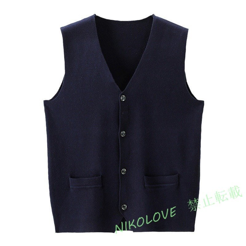 - 新品 ウール混 ニットベスト チョッキメンズ 秋冬 厚手 カジュアル Vネック ニットセーター/紺色