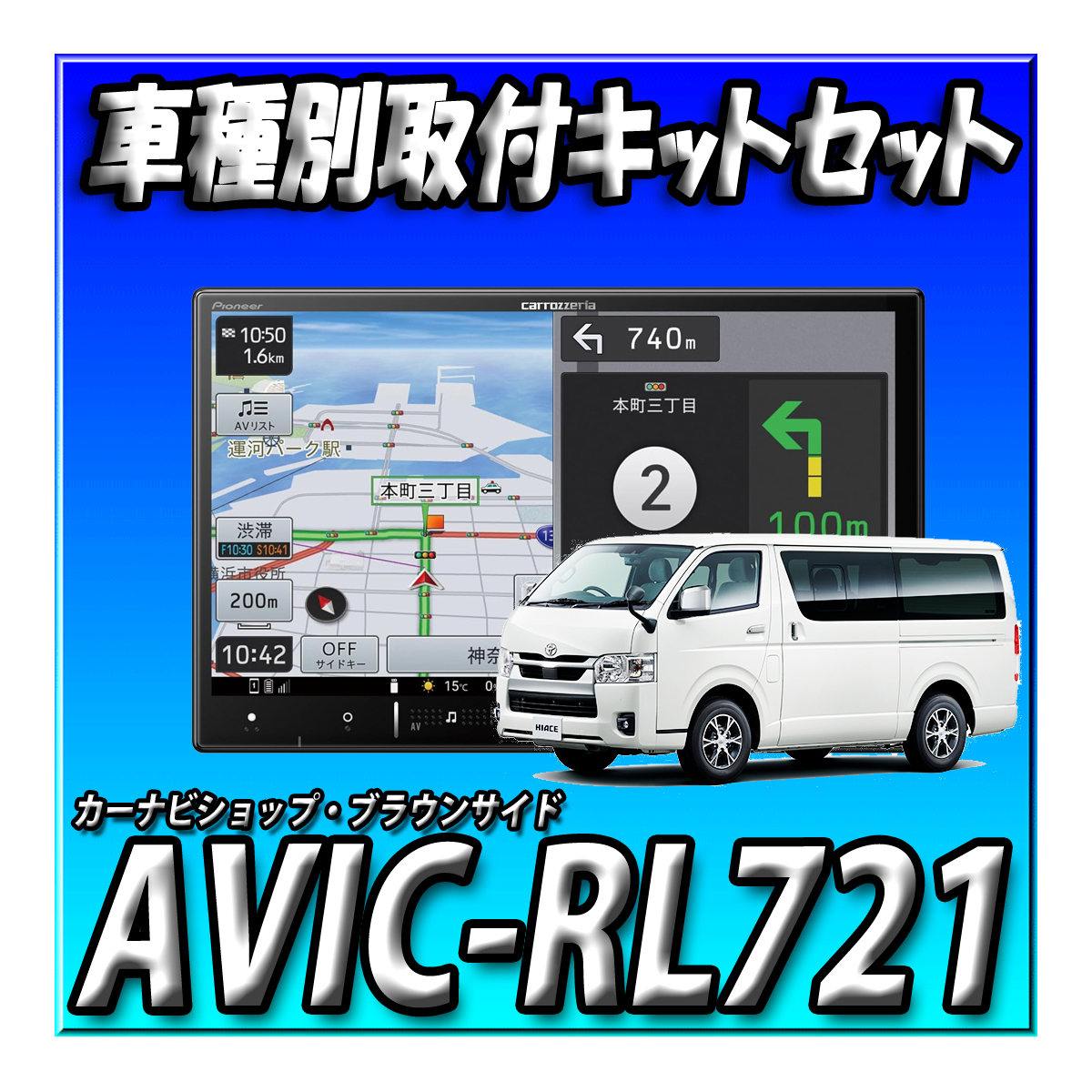 > 【5点セット販売キャンセラー付】AVIC-RL721+ハイエース200系 標準ボディ用取付キット+ドラレコ前後+ドラレコ駐車ケーブル 8インチ