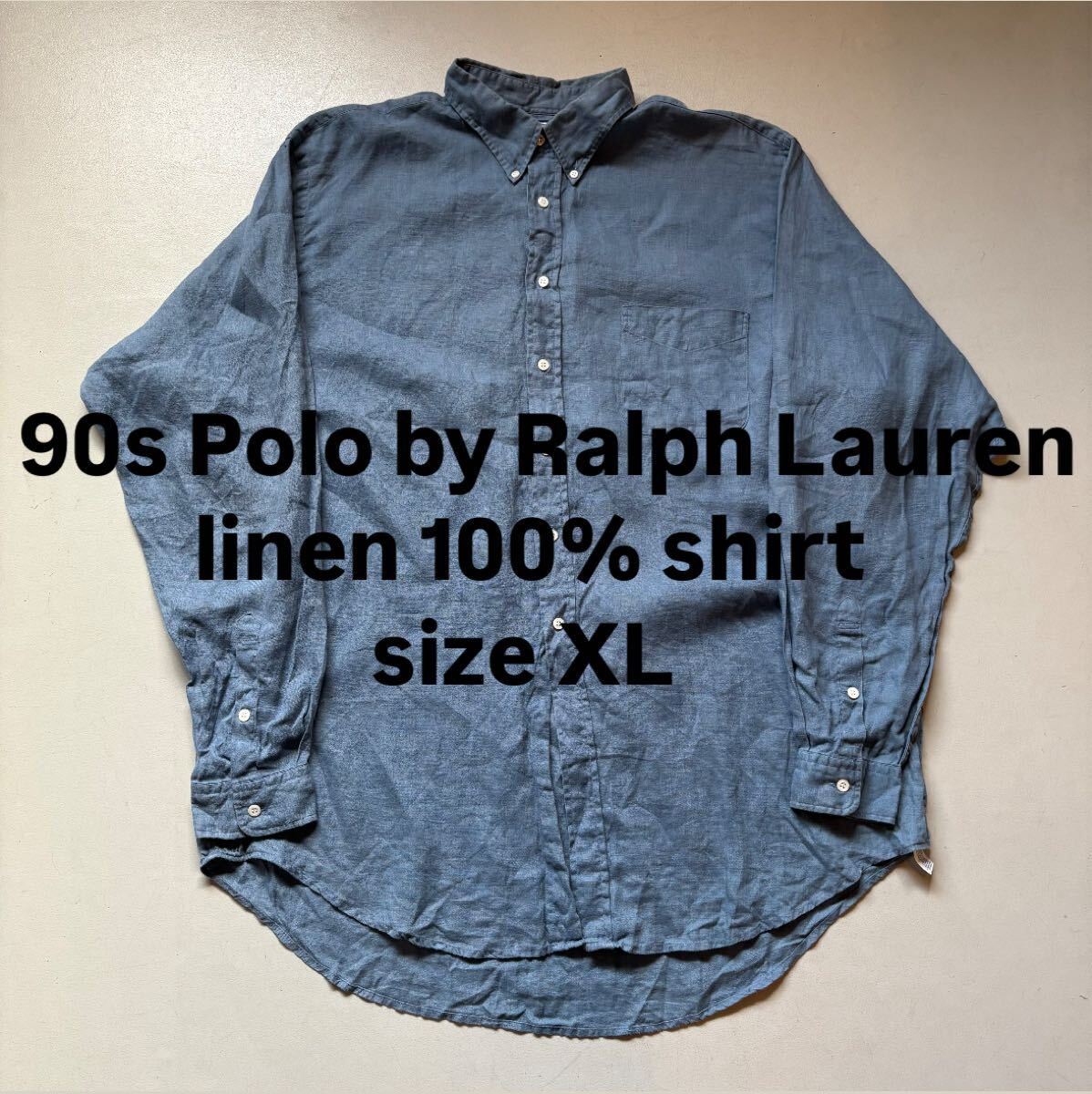 > 90s Polo by Ralph Lauren linen 100% shirtsize XL 90年代 ポロバイラルフローレン リネン100% シャツ ブルー