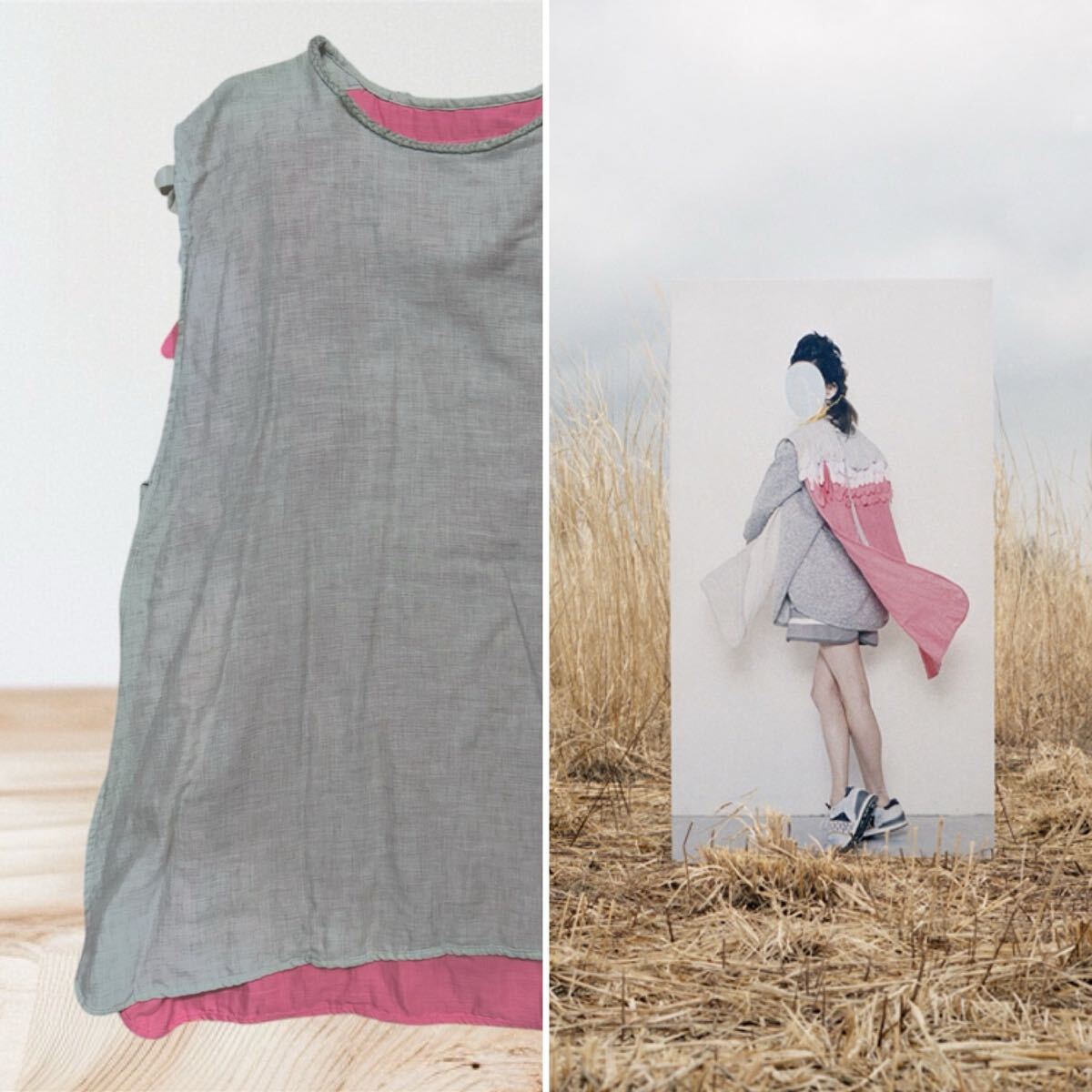 - YEAH RIGHT!!イェーライト!!日本製 ピンク グレー ハンドメイド パッチワーク 羽ベストワンピース ノースリーブ 装苑 東京コレクション